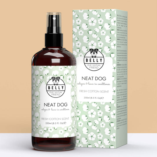 Refreshing cologne spray Long-lasting freshness for your dog's fur. Keep your fluffy friend fresh and perfumed reducing the number of baths. Covers and neutralizes bad odors. It leaves a heavenly good and long-lasting peach smell. Perfect for on the go and whenever there is no time for a dog bath.